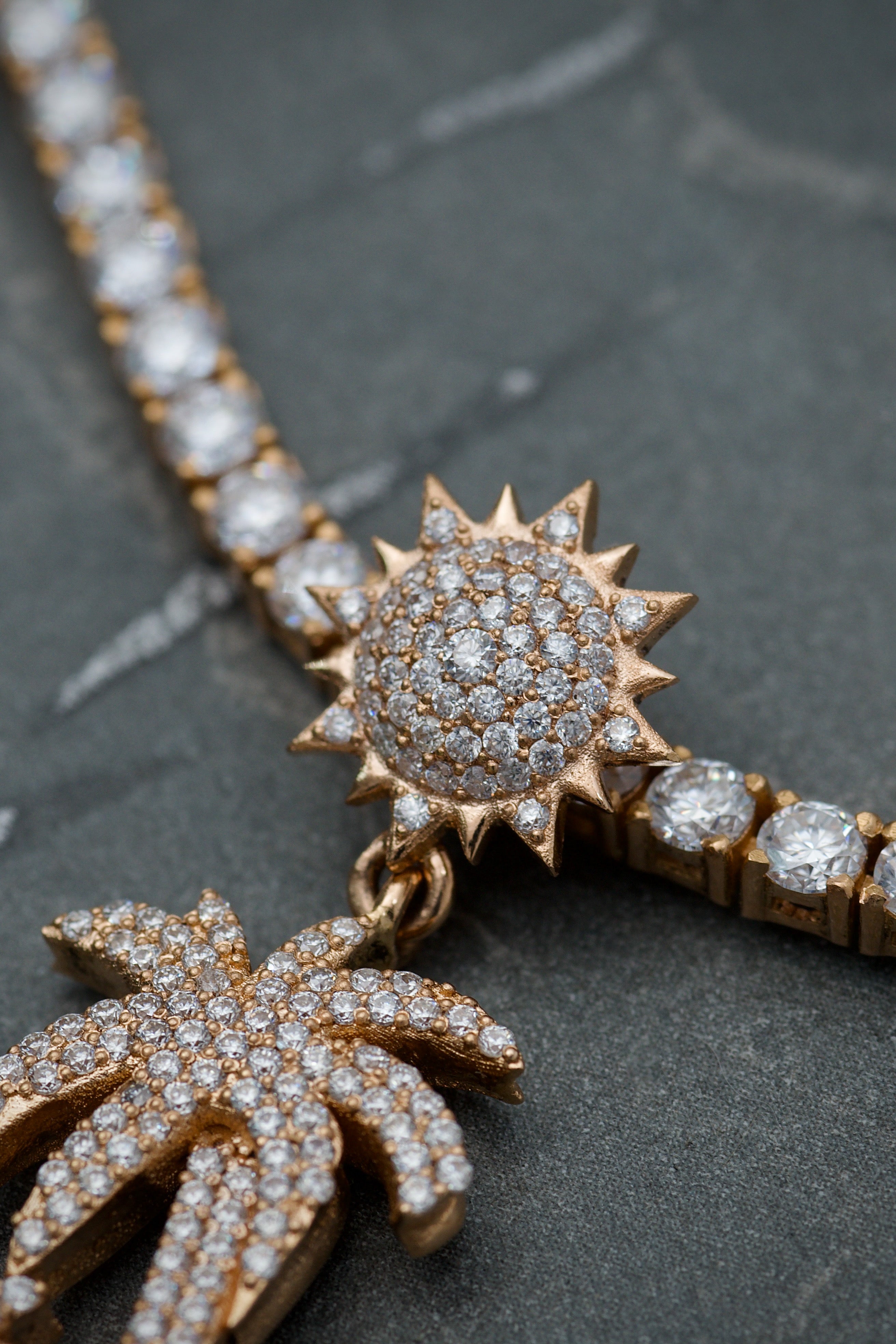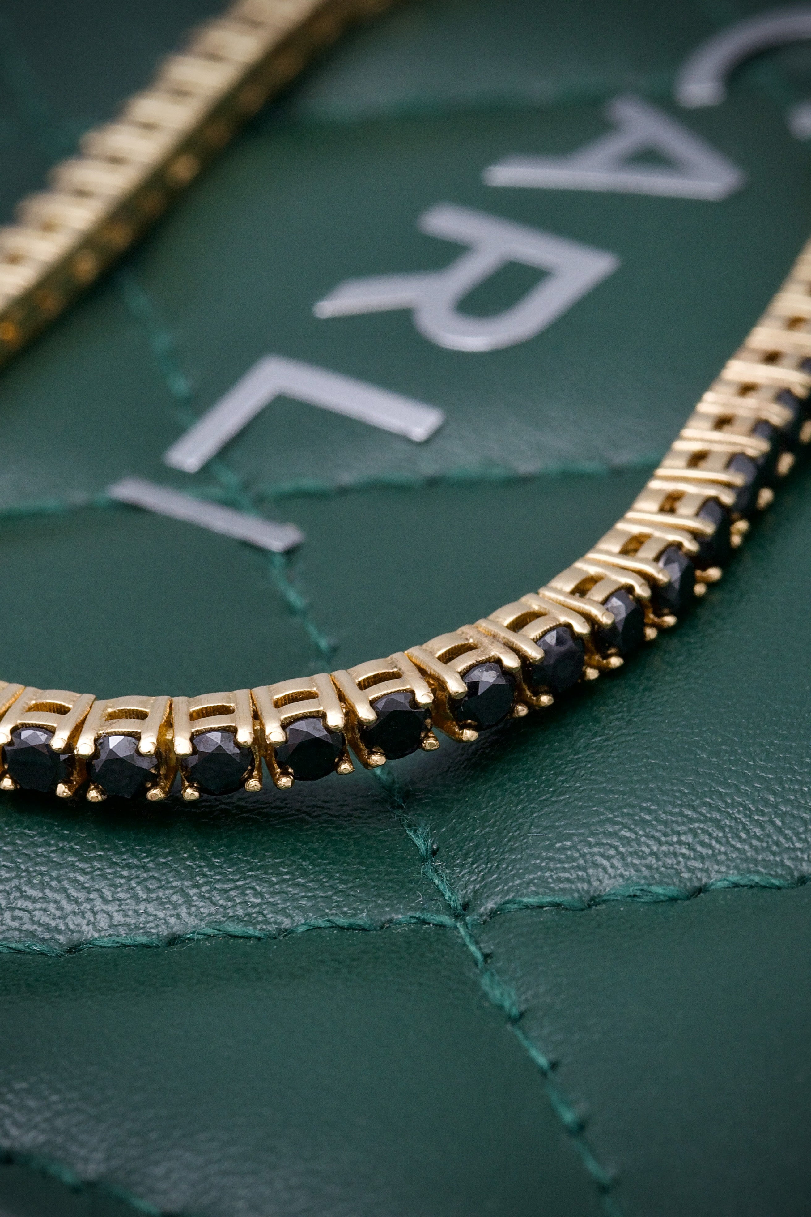 Brillo continuo, ingeniería perfecta. Nuestro tejido tennis se caracteriza por un engaste uniforme de gemas que crea una línea de luz ininterrumpida.